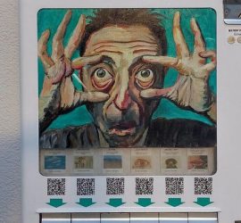 Kunst für Alle! Bezahlbare kleine Kunstwerke aus einem umgebauten Zigarettenautomat ziehen. Vorsicht Suchtfaktor!