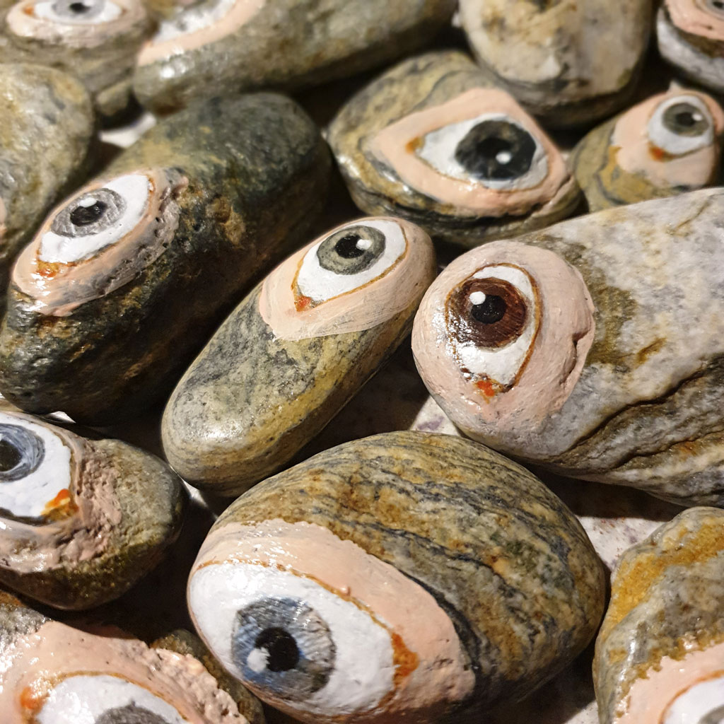 Ich liebe es an einem Strand oder in einem Bachbett Steine zu suchen. In einer wunderschönen einsamen Bucht auf Elba fand ich Steine, die mich anblickten und forderten, sie mitzunehmen. Zu Hause arbeitete ich diese Augen heraus. Es entstand die kleine Serie der Elbasteine in einer limitierten Auflage von 25 Stück. Und wie jeder Stein ist auch jedes Stück dieser Serie ein kleines Unikat.