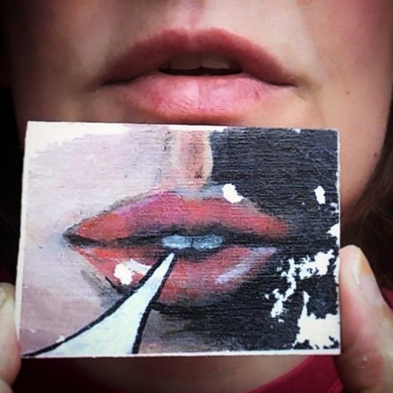 Kopie einer Acrylzeichnung per Transferdruck auf MDF aufgebracht, mit Papierband beklebt, 70 x 50 mm